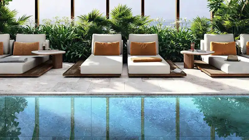- A leisure deck with an infinity pool that gives a great view of the area and the coast, supported by a complete gym that focuses on health and wellness.