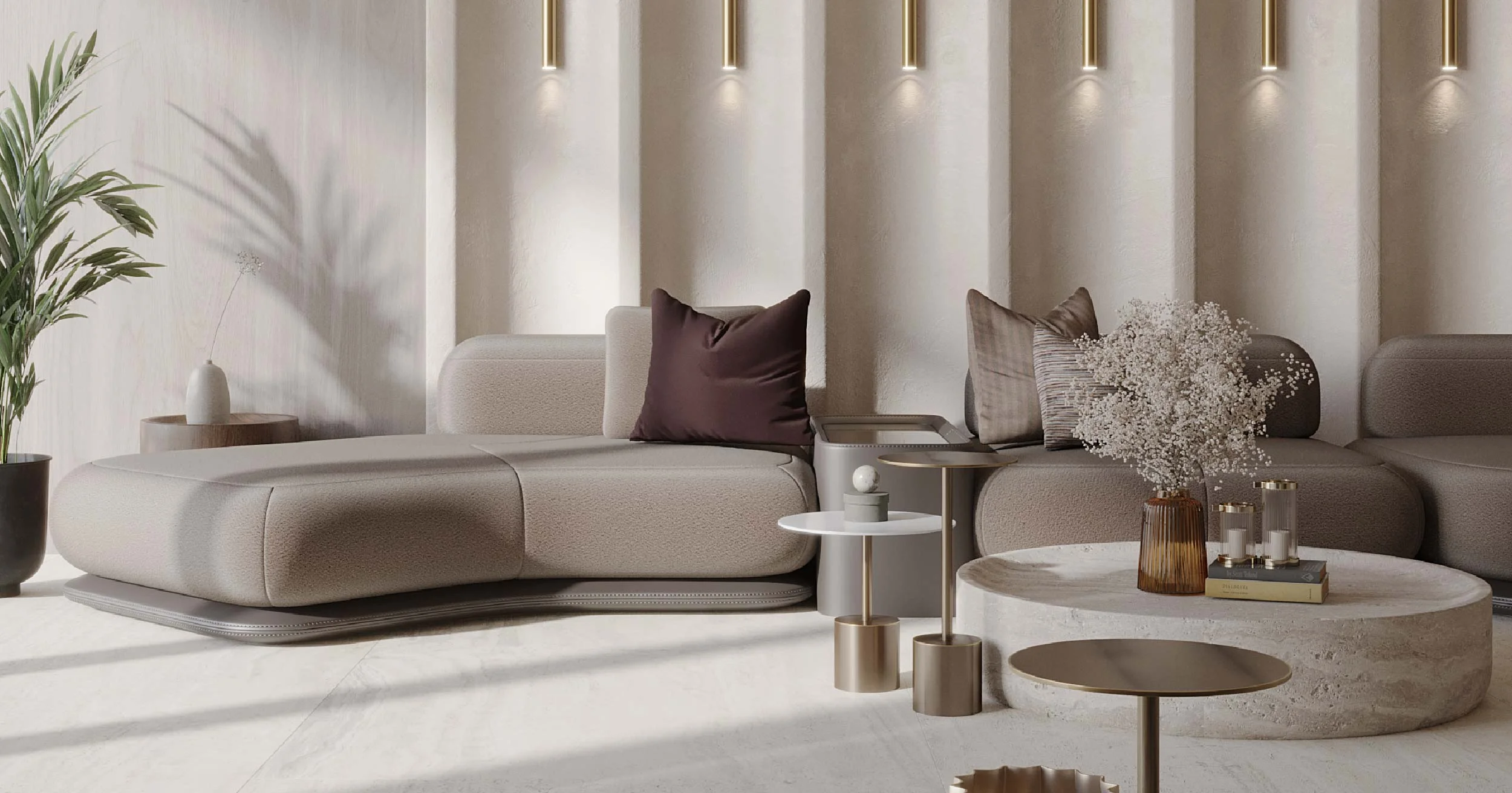 - Elegant Living Spaces: Carefully designed homes with streamlined shapes, high-end materials, and carefully chosen artwork.
