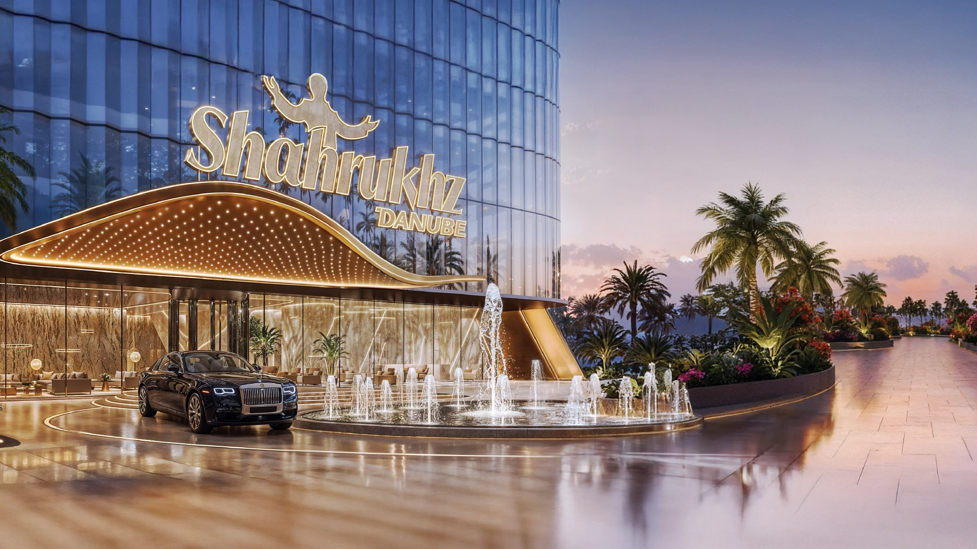 Shahrukhz Danube located on Sheikh Zayed Road is a famous commercial building in Al Sufouh, Dubai. It is named after the actor Shah Rukh Khan and offers special office spaces. This skyscraper is a major project that aims to change the way people work, and it’s designed to make office experiences better. The building is sleek and beautifully designed, inspired by the life story of Shah Rukh Khan. It was developed by the Danube Properties, a trusted developer in the Middle East with 33 years of experience. The tower includes unique offices, high-end facilities, and convenient spaces that help improve productivity, health, and reputation.